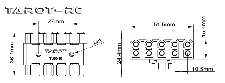 產品名稱:Tarot 分電模塊/電源集線器/全銅鍍金大電流/兼容XT60H TL60-10H