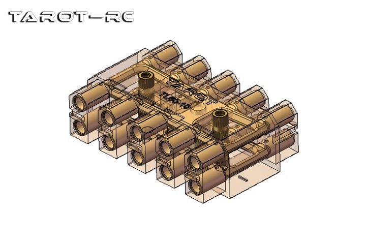 Tarot公司出廠的一出十電源分配模塊,專為大中型無人機研制,支持線路輸出10路內的任意類型無人機,外殼采用注塑壓模一體成型的設計,內部線路則采用實心全銅(表面鍍真金)一體成型的構造,持續(xù)電流150A,瞬間電流可達200A。