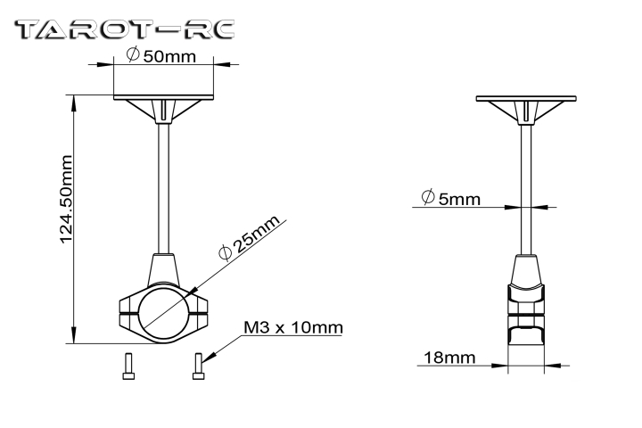 Tarot出品的GPS固定座,采用復合材料注塑成型,整體重量輕且堅固耐用。抱管式方式固定,適用于25mm管徑的多旋翼使用。