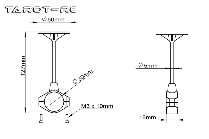Tarot出品的GPS固定座,采用復(fù)合材料注塑成型,整體重量輕且堅(jiān)固耐用。抱管式方式固定,適用于30mm管徑的多旋翼使用。